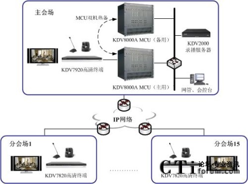 在充分了解用戶(hù)應(yīng)用需求的基礎(chǔ)上,2011年初科達(dá)為青島工商局規(guī)劃部署了一套高清視頻會(huì)議系統(tǒng)。其中,為了進(jìn)一步提升用戶(hù)的遠(yuǎn)程溝通體驗(yàn)和交互感,科達(dá)在市局主會(huì)場(chǎng)部署了1臺(tái)KDV7920高清視頻會(huì)議終端,在下屬14個(gè)分(市)局以及工商所分會(huì)場(chǎng)則各部署了1臺(tái)KDV7820高清視頻會(huì)議終端;而考慮到青島工商對(duì)于系統(tǒng)安全性、穩(wěn)定性方面的較高要求,科達(dá)則為其部署了 2臺(tái)KDV8000A多點(diǎn)控制單元(MCU)以實(shí)現(xiàn)雙機(jī)熱備;此外,系統(tǒng)還部署了KDV2000錄播服務(wù)器,以實(shí)現(xiàn)會(huì)議、培訓(xùn)過(guò)程的錄像和點(diǎn)播。整個(gè)系統(tǒng)通過(guò)工商局內(nèi)部的專(zhuān)網(wǎng)實(shí)現(xiàn)視音頻溝通和數(shù)據(jù)共享。