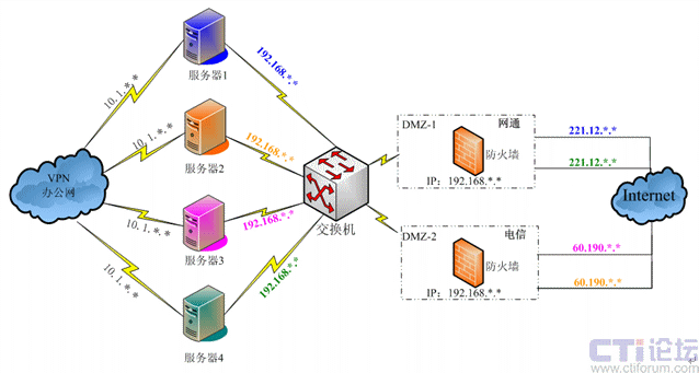 安邦保險(xiǎn)在全國各地共37個(gè)分支機(jī)構(gòu),網(wǎng)絡(luò)結(jié)構(gòu)復(fù)雜,有電信用戶、網(wǎng)通用戶以及VPN專網(wǎng)用戶等,系統(tǒng)平臺的搭建要能夠?qū)崿F(xiàn)不同網(wǎng)絡(luò)間實(shí)時(shí)快速的溝通。