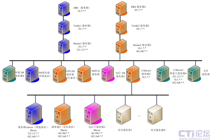 系統(tǒng)平臺采用集群化部署,實(shí)現(xiàn)跨網(wǎng)絡(luò)分布式,從而在應(yīng)用中實(shí)現(xiàn)南北網(wǎng)通電信的互聯(lián)互通,以及專網(wǎng)用戶的無障礙接入,實(shí)現(xiàn)方式如下圖所示: