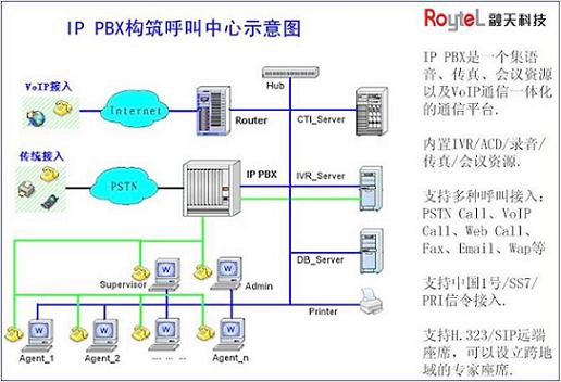 RT-CCP1000系列,將CTI服務(wù)器、PBX交換機(jī)、CALLCENTER呼叫中心、CRM客戶(hù)管理、CDR通話(huà)詳細(xì)報(bào)告、VOIP網(wǎng)絡(luò)電話(huà)、IVR自動(dòng)語(yǔ)音應(yīng)答、ACD自動(dòng)話(huà)務(wù)分配、FAX傳真服務(wù)器、Recording等充分融于一體,無(wú)須外掛任何其他設(shè)備、就能實(shí)現(xiàn)大容量的電話(huà)呼入/呼出處理、電話(huà)轉(zhuǎn)接等傳統(tǒng)PBX的所有功能,同時(shí)還提供傳統(tǒng)PBX所不具備的語(yǔ)音信箱、客戶(hù)關(guān)系管理、電話(huà)會(huì)議、VoIP等高端系統(tǒng)功能。以極其低廉的成本,為廣大企業(yè)用戶(hù)提供了強(qiáng)大的功能和豐富的應(yīng)用。本呼叫中心的面市,大大降低了呼叫中心的應(yīng)用門(mén)檻,將徹底改變只有大中型企業(yè)才能建設(shè)呼叫中心的傳統(tǒng)觀(guān)念。