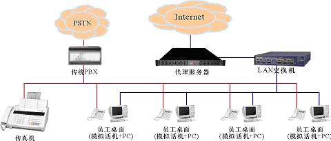 某中小企業(yè),無分支機(jī)構(gòu),現(xiàn)時(shí)有一個(gè)由傳統(tǒng)PBX構(gòu)建的電話系統(tǒng)和一個(gè)以太局域網(wǎng),兩者相互獨(dú)立,局域網(wǎng)通過一臺代理服務(wù)器用以太網(wǎng)或ADSL方式接入Internet。企業(yè)的語音通信由電話系統(tǒng)實(shí)現(xiàn);員工的日常工作需要使用計(jì)算機(jī)以及多種局域網(wǎng)和Internet服務(wù)。