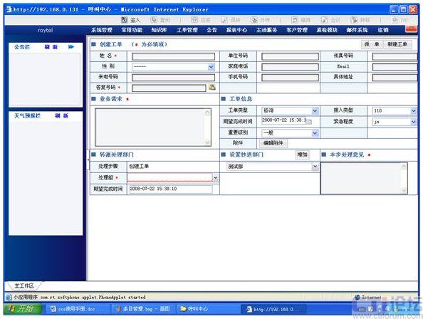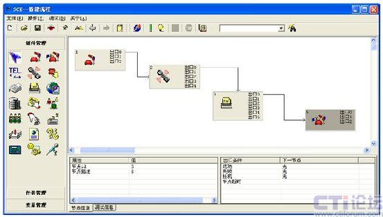 簽入、簽出、置閑、置忙、應(yīng)答、掛機(jī)、保持/取回、咨詢/取消咨詢、兩路切換、轉(zhuǎn)接、三方會(huì)議、轉(zhuǎn)技能組、外呼等;豐富的業(yè)務(wù)系統(tǒng)功能包括:工單管理、知識(shí)庫、客戶管理、質(zhì)檢管理、外撥管理、業(yè)務(wù)統(tǒng)計(jì)報(bào)表、公告板、郵件管理、系統(tǒng)管理、前臺(tái)業(yè)務(wù)(坐席)功能、班長(zhǎng)功能、數(shù)據(jù)同步、全程錄音、業(yè)務(wù)處理等,這些功能不作詳細(xì)介紹。IVR流程也是采用非常先進(jìn)的圖形化流程編輯器,通過簡(jiǎn)單的拖、拉圖標(biāo)方式即可實(shí)現(xiàn)對(duì)IVR流程的定制: