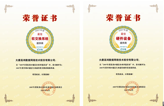 日前,由C114中國通信網(wǎng)主辦的“2007年度優(yōu)秀IP通信企業(yè)評(píng)選活動(dòng)”圓滿結(jié)束。大唐高鴻數(shù)據(jù)網(wǎng)絡(luò)技術(shù)股份有限公司(以下簡稱“大唐高鴻”)憑借雄厚實(shí)力喜獲“2007年度中國IP通信行業(yè)最佳軟交換系統(tǒng)提供商”和“2007年度中國IP通信行業(yè)最佳硬件設(shè)備提供商”兩項(xiàng)大獎(jiǎng)。這是大唐高鴻繼2007年4月榮獲中國VoIP論壇“2006年最佳中繼網(wǎng)關(guān)提供商”和“2006最佳VoIP解決方案提供商”兩項(xiàng)大獎(jiǎng)之后的又一次實(shí)至名歸。