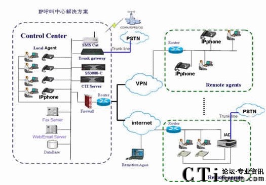 “服務(wù)中心網(wǎng)絡(luò)化”——充分利用IP話機(jī)的靈活移動和免費特點,服務(wù)中心的人工坐席可以靈活設(shè)置;