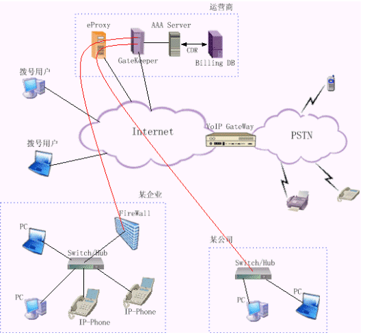 運(yùn)營(yíng)級(jí)IP電話(huà)解決方案為運(yùn)營(yíng)商提供一種可靠經(jīng)濟(jì)的VoIP接入平臺(tái)與VoIP骨干網(wǎng)互連,這種方式可以充分利用網(wǎng)絡(luò)資源,降低用戶(hù)服務(wù)價(jià)格,提高運(yùn)營(yíng)商的競(jìng)爭(zhēng)力。它為用戶(hù)提供了多種業(yè)務(wù)類(lèi)型,除了可以實(shí)現(xiàn)任意兩點(diǎn)間的PC互通外,還可以實(shí)現(xiàn)PC通過(guò)VoIP網(wǎng)關(guān)與PSTN用戶(hù)間的互聯(lián)互通。