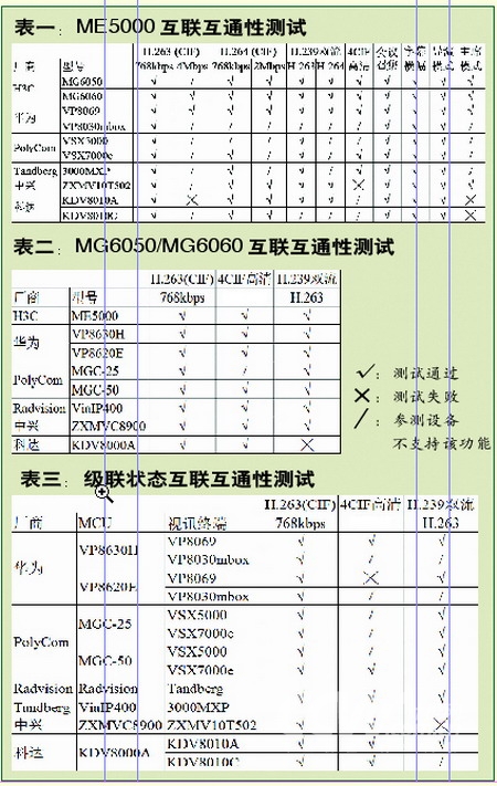 盡管自身能量有限,所采用的也是“病一個,治一個”的“笨”方法,但對于改善互聯互通性的作用還是很大的。根據H3C的所提供的資料顯示,其推出的ME5000多點控制單元以及MG6050/MG6050視訊終端能夠與絕大多數主流廠商的產品協同工作,只要雙方設備支持,H.239雙視頻流傳送、H.264視頻編解碼以及4CIF高清規(guī)格視頻傳送等功能幾乎都可實現。
