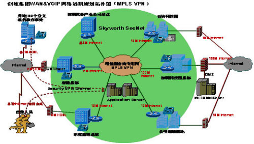 創(chuàng)維集團現(xiàn)有數(shù)據(jù)網(wǎng)絡通信架構如下