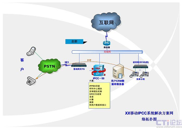 隨著社會的進步和發(fā)展,各企業(yè)和公司越來越重視將現代科技和營銷相結合,華東某省移動公司,為了快速高效地拓展自己的業(yè)務,決定借助網絡和通訊的發(fā)展建立新的營銷平臺,通過嚴格的考察和篩選,選擇攜手Polylink集團打造新型的IP呼叫中心平臺。 4.方案設計