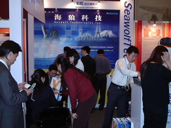 2005年5月18日在北京長(zhǎng)城飯店召開的《2005中國(guó)IP語(yǔ)音網(wǎng)絡(luò)、軟交換及SIP研討會(huì)暨展覽會(huì)》上,海狼科技展臺(tái)前人頭攢動(dòng),很多商家對(duì)海浪科技技術(shù)和產(chǎn)品的表現(xiàn)感到相當(dāng)滿意,并有新加坡、臺(tái)灣客戶現(xiàn)場(chǎng)購(gòu)買產(chǎn)品。