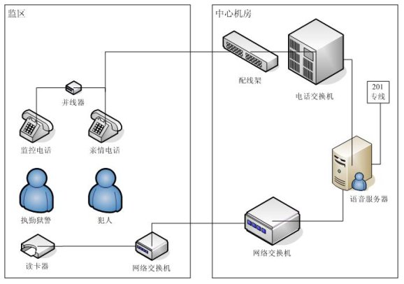 親情電話管理系統(tǒng)在系統(tǒng)設(shè)計(jì)中充分考慮監(jiān)獄的需求與特點(diǎn),不但包含了一般親情電話錄音所需的全部功能,而且還融合了獄政管理的功能,整個(gè)系統(tǒng)采用集中式方式,在中心機(jī)房部署一套親情電話錄音服務(wù)器,各個(gè)監(jiān)區(qū)監(jiān)控系統(tǒng)利用監(jiān)獄內(nèi)部的局域網(wǎng)聯(lián)結(jié)成一個(gè)整體,形成一個(gè)能監(jiān)控監(jiān)獄親情電話的全網(wǎng)。這樣即可以在每個(gè)監(jiān)區(qū)監(jiān)聽(tīng),也可以在監(jiān)獄內(nèi)部網(wǎng)的任何地方對(duì)親情電話進(jìn)行全程監(jiān)視。該系統(tǒng)能夠完全滿足目前監(jiān)獄的需求,產(chǎn)品性價(jià)比遠(yuǎn)遠(yuǎn)高于市場(chǎng)上其他同類產(chǎn)品。