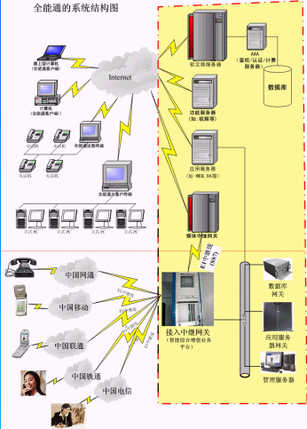 在和創(chuàng)世紀(jì)全能通的基礎(chǔ)下電信、網(wǎng)通、移動、聯(lián)通、鐵通、衛(wèi)通等電信運營商可用來做下一代網(wǎng)絡(luò)(NGN)業(yè)務(wù)及運營,虛擬電信運營商和增值業(yè)務(wù)服務(wù)商、新興電信運營商開展各種電信運營、增值業(yè)務(wù)和搶占語音市場的利器。(具體有關(guān)‘如何用全能通平臺切入語音市場’,請來來電咨詢)