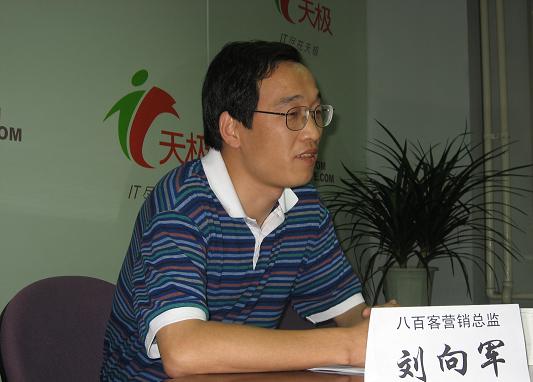 劉向軍:一個公司的名稱一定有它的含義。當(dāng)時創(chuàng)業(yè)的時候來講,這個名字意思很多。其中很重要的就是一個理念。當(dāng)時對未來市場的評估看不太清楚,但是對一個提供在線托管服務(wù)廠商,單位廠商認為至少要到八百個客戶。所以八百客具有八百個客戶的意思。當(dāng)然還有其他的意思,F(xiàn)在八百客經(jīng)過這么兩年的時間,無論從產(chǎn)品技術(shù),還是從客戶的現(xiàn)在擁有量,還是在市場影響層面,已經(jīng)站住腳跟。當(dāng)然一個行業(yè)的發(fā)展,這種趨勢越來越快。