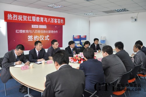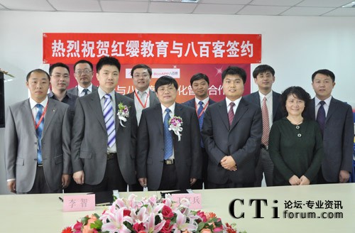 簽約當日,八百客與紅纓教育在北京中關村軟件園舉辦隆重的“信息化管理啟動會”。紅纓總經理王紅兵、八百客CEO李智等參加此次項目的啟動會。