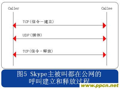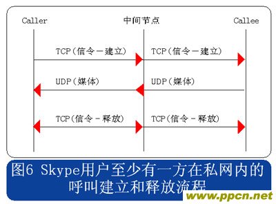 從上述流程圖可見(jiàn),Skype的呼叫信令都采用TCP封裝,而媒體流則使用UDP封裝,當(dāng)有任何一方用戶(hù)位于限制UDP包的防火墻內(nèi)時(shí),媒體流就會(huì)采用TCP封裝。另外當(dāng)Skype用戶(hù)至少有一方位于私網(wǎng)內(nèi)時(shí),所有的信令和媒體消息都經(jīng)過(guò)一個(gè)或多個(gè)中間節(jié)點(diǎn)轉(zhuǎn)發(fā)。此時(shí)無(wú)需擔(dān)心用戶(hù)通話(huà)的媒體流因?yàn)榻?jīng)過(guò)中間節(jié)點(diǎn)轉(zhuǎn)發(fā)而被竊聽(tīng),因?yàn)镾kype采用了對(duì)消息進(jìn)行端到端加密的機(jī)制。