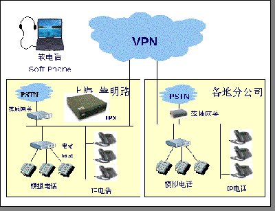 有了這個 IP 電話網絡,出差員工可以方便地使用軟電話通過網絡與公司免費通訊,直接可以通過公司的 IP 電話網,撥打當地電話,實行長話變市話,降低了出差通訊成本。