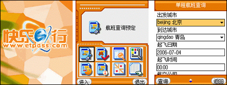 “快樂e行”預(yù)裝在手機(jī)中的存儲(chǔ)卡中,可直接安裝到手機(jī)的應(yīng)用菜單欄里,點(diǎn)擊圖標(biāo),就可以直接進(jìn)入首頁。圖形化的操作按鍵、簡(jiǎn)明的文字提示、順暢的操作流程,人性化的設(shè)計(jì)讓機(jī)票預(yù)訂變得不再麻煩。