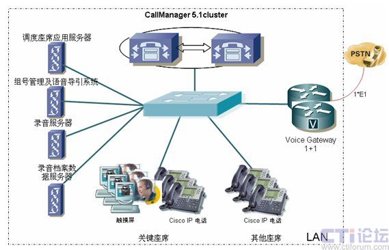 正音科技電話(huà)控制調(diào)度系統(tǒng)充分利用現(xiàn)有首都機(jī)場(chǎng)的IP網(wǎng)絡(luò)及通信資源,以IP電話(huà)系統(tǒng)為基礎(chǔ),構(gòu)建電話(huà)調(diào)度系統(tǒng)基礎(chǔ)網(wǎng)絡(luò)。電話(huà)控制系統(tǒng)主要由兩部分組成,其中包括由CallManager、語(yǔ)音網(wǎng)關(guān)、IP電話(huà)構(gòu)成的底層IP通信系統(tǒng);在此基礎(chǔ)上,還有正音科技為首都國(guó)際機(jī)場(chǎng)開(kāi)發(fā)的電話(huà)調(diào)度控制應(yīng)用軟件系統(tǒng)以及與應(yīng)急救援警示系統(tǒng)等集成的接口。