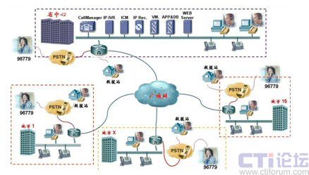 如上圖所示,由于Cisco IPCC是基于標準IP網絡的純IP呼叫中心解決方案,呼叫中心的核心設備都只部署在省中心機房,其它地市只需要在原有網絡的路由器上添加語音模塊即可實現(xiàn)PSTN語音的本地接入,而無需再各地市購買額外的接入設備。而同樣由于IP網絡的特性,呼叫中心的坐席可以根據(jù)需要部署在甘肅省運輸管理局IP網絡可達的任何一個地方,各地市的坐席只需要配備IP電話和座席PC即可。來自PSTN的電話根據(jù)用戶在IVR中的選擇和其它路由策略,自動分配到最適合的坐席處理,譬如來自白銀的運政投訴由白銀市本地的運政大廳座席人員處理。