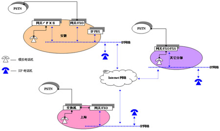 建立起VoIP后,可節(jié)省總分支機構(gòu)之間的國際、國內(nèi)長途、農(nóng)話。各點之間互發(fā)傳真。并且在將來和總部之間IP語音網(wǎng)絡(luò)互連,形成覆蓋全國的IP電話網(wǎng)絡(luò)。IP語音網(wǎng)絡(luò)除了提供集團內(nèi)部辦公、業(yè)務(wù)和技術(shù)支持通話以外,也適應(yīng)數(shù)據(jù)集中后,各種投訴電話、呼叫中心等用戶電話的接入,客戶和商戶不必?fù)艽螂娫挼娇偛,只需撥打本地IP語音網(wǎng)關(guān),大大降低運營成本。