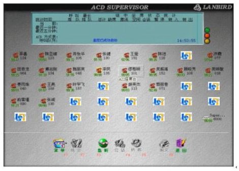 可監(jiān)視IVR的狀態(tài), 包括:       可監(jiān)視數(shù)據(jù)庫代理服務(wù)器的處理狀態(tài), 包括:       可監(jiān)視客戶服務(wù)平臺(tái)的全部坐席的工作狀態(tài), 包括簽入, 簽出, 空閑,示忙, 正在通話, 等待應(yīng)答, 等待來話, 用戶掛機(jī), 等待被叫振鈴, 三方通話,座席通道壞或座席死機(jī), 座席通道已經(jīng)恢復(fù), 人工轉(zhuǎn)自動(dòng), 坐席掛起等。