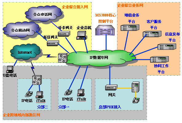單一的電話通信方式已經(jīng)遠(yuǎn)遠(yuǎn)不能滿足現(xiàn)代企業(yè)(包括行業(yè)、政府機(jī)關(guān))在通信方面的需求,隨著IP網(wǎng)絡(luò)的不斷普及、新的通信技術(shù)的不斷發(fā)展,“多媒體協(xié)同通信”一個新的通信概念已經(jīng)展現(xiàn)在我們的面前。我們需要跨地域的內(nèi)部電話,我們需要廉價(jià)的IP長途,我們同樣需要通信服務(wù)平臺、信息發(fā)布平臺,我們還需要工作協(xié)同、信息共享!岸嗝襟w協(xié)同通信”就能滿足我們這些需要。