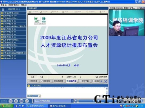 CTI論壇(ctiforum)2月24日消息(記者 張塵):2月9日上午,江蘇省電力公司通過視維虛擬教室召開全省人才資源統(tǒng)計報表布置會。來自全省電力系統(tǒng)65處市、縣負(fù)責(zé)人才資源統(tǒng)計工作的同志參加這次培訓(xùn),通過視維虛擬教室不僅避免了陰雨天氣和交通不便等諸多困難,還擴大了培訓(xùn)人員的范圍。