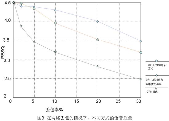 從圖3可以看到,在網(wǎng)絡(luò)丟包比較高的時候,使用主動干預(yù)仍然可以獲得比較好的語音質(zhì)量。