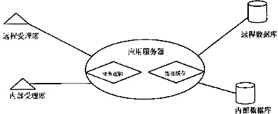 受理席可以是中心內部的受理席或遠程外包受理席;客戶端為普通Windows應用,瀏覽器為動態(tài)HTML(CGI、ASP、JSP)和Java Applet。它們都是瘦客戶端,僅有用戶界面,可訪問應用服務器的業(yè)務邏輯; 業(yè)務可由插件的方式改變,這些都可通過應用服務器的業(yè)務邏輯改變來實現。 整個系統(tǒng)網絡連接由TCP/IP上層協(xié)議CORBA、Http、Socket實現。