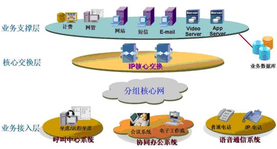 業(yè)務支撐層:計費、網管、多媒體視頻、應用服務器等各種功能服務器?膳c用戶的業(yè)務數(shù)據(jù)庫對接,為整個業(yè)務提供有力的支撐平臺。確保有效快速的處理呼叫流程、提高工作效率,評估呼叫中心的表現(xiàn)。