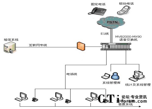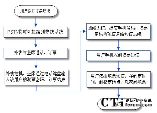 1、用戶通過手機(jī)電話訂票,首先經(jīng)過PSTN進(jìn)入訂票熱線系統(tǒng)。