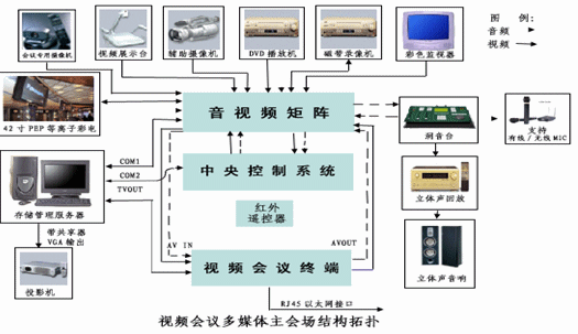 根據(jù)貴單位的分布特點,視頻會議會議系統(tǒng)建立7個會場,其中主會場一個,設在大樓的會議室,分會場6個,設在各下屬單位會議室。傳輸信道采用系統(tǒng)內部的寬帶IP綜合網絡。