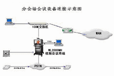 在各分會場,提供100M快速交換以太網端口連接分會場會議終端WL-2000MH,以上設備分別通過綜合信息網提供的100M快速交換以太網接入主會議系統(tǒng)網。另外,在分會場預留一條電話備份線路,也可以用音頻撥號方式撥入,用參加視頻會議。