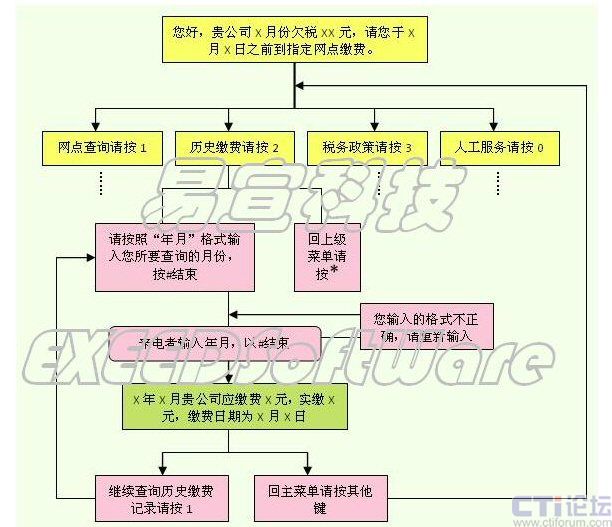 - 播放內(nèi)容為IVR交互式語(yǔ)音流程(也叫語(yǔ)音架構(gòu)),用戶(hù)和稅務(wù)部門(mén)能夠通過(guò)用戶(hù)的選擇產(chǎn)生互動(dòng)交流;