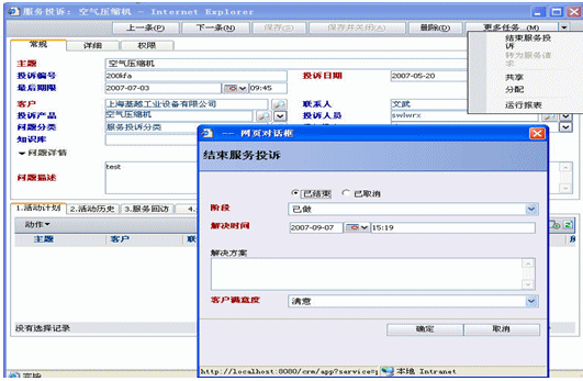 服務(wù)投訴,公司服務(wù)投訴由前臺接收然后轉(zhuǎn)交工程服務(wù)人員受理即是由工程服務(wù)部經(jīng)理審核通過后轉(zhuǎn)為服務(wù)請求,從而生成派工單提交總經(jīng)理處審批.