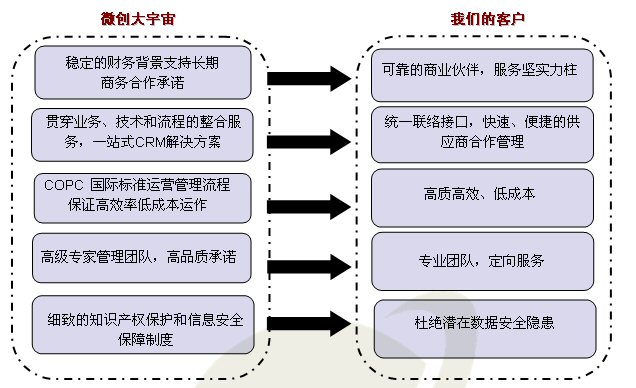 依托于兩大成功企業(yè)背景平臺,微創(chuàng)大宇宙從組建伊始即擁有微創(chuàng)軟件的專業(yè)技術支持能力、強大技術開發(fā)實力加之transcosmos的成熟流程運營體系、豐富行業(yè)實踐經(jīng)驗及雙方堅實行業(yè)背景,是微創(chuàng)大宇宙一躍成為目前中國呼叫中心外包領域成長最快的企業(yè)。