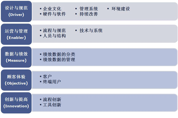 呼叫中心能力成熟度認證涉及設計與規(guī)范、運營與管理、數(shù)據與績效、顧客體驗、創(chuàng)新與提高5大類,14項評審指標以及若干個值得關注的管理項目。是一套完整的“客戶為中心”的績效管理工具。