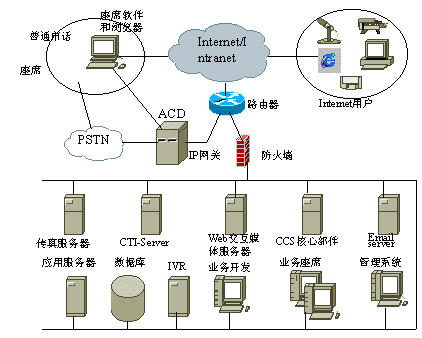 客戶服務(wù)中心(Call center),它是一種基于CTI(computer telecommunication integration)技術(shù),充分利用電信網(wǎng)和計算機網(wǎng)的多項功能集成與企業(yè)其它信息化系統(tǒng)連為一體的完整的綜合信息服務(wù)系統(tǒng),為客戶提供全新的現(xiàn)代化的客戶服務(wù)方式。