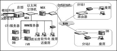 網(wǎng)音十萬(wàn)元級(jí)高性能IPCC能夠在WAN/LAN內(nèi)真正實(shí)現(xiàn)全包交換技術(shù)的語(yǔ)音應(yīng)用平臺(tái)。它包括一個(gè)基本的NBX硬件平臺(tái)單元、一臺(tái)高性能服務(wù)器及相關(guān)路由控制、呼叫管理、通用坐席應(yīng)用及通用數(shù)據(jù)庫(kù)接口等軟硬件產(chǎn)品,它支持8外線、8座席的應(yīng)用規(guī)模。在此平臺(tái)基礎(chǔ)上,系統(tǒng)擴(kuò)容時(shí)只需增加相關(guān)軟件使用許可證、外線接口卡及坐席終端即可輕松將此平臺(tái)服務(wù)容量擴(kuò)充至最大外線容量90端口,最大座席容量150席的應(yīng)用規(guī)模。同時(shí),此種應(yīng)用解決方案對(duì)集中呼入/呼出控制,分散點(diǎn)多,每分散點(diǎn)座席數(shù)少,個(gè)點(diǎn)通過數(shù)據(jù)線路與接入平臺(tái)連接的分布式Call