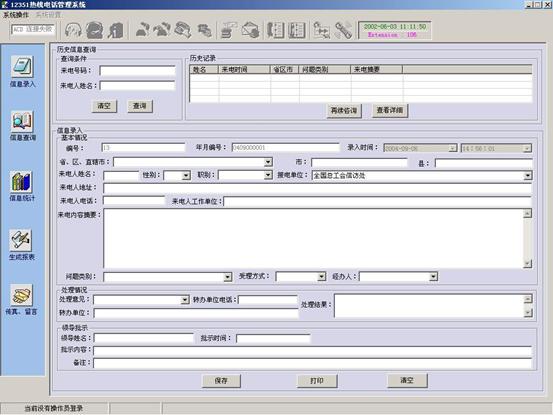 - 完善業(yè)務統(tǒng)計工作:針對健康熱線采集的信息,我們根據(jù)實際需要設計了統(tǒng)一格式的各項報表,同時將報表全部做電子化處理,方便業(yè)務數(shù)據(jù)的統(tǒng)計及管理,為各級領導決策提供可靠依據(jù)。