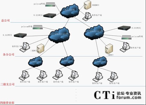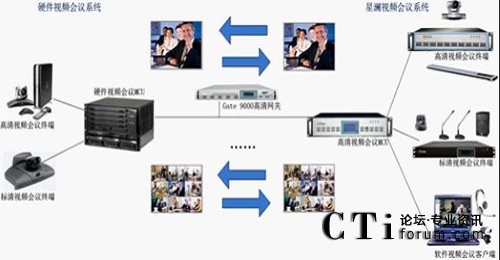 通過H.323會議網(wǎng)關,把polycom終端信號接到新視頻會議系統(tǒng)中,保護原有投資,建立大規(guī)模一體化視頻會議的應用。