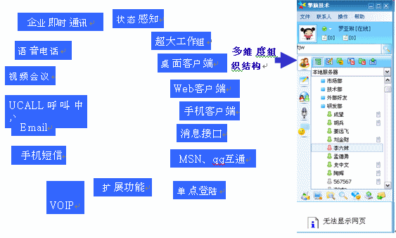 UcSTAR:Unified Communication Star,是擎旗技術(shù)研發(fā)的統(tǒng)一通訊平臺,它為企業(yè)提供多種通訊手段(企業(yè)即時通信、視頻、語音、郵件、短信、電話、MSN/QQ互通等),并可融合企業(yè)的各種應(yīng)用系統(tǒng)(OA、ERP、CRM、網(wǎng)站、電子商務(wù)系統(tǒng)等);將企業(yè)對外溝通、銷售和服務(wù)、對內(nèi)溝通和協(xié)作無縫整合;輕松實現(xiàn)無地域/時間限制的,可管理、可控制、可擴展的,集內(nèi)外部溝通、服務(wù)和銷售一體化的統(tǒng)一工作平臺。此外,它也可被分離應(yīng)用為企業(yè)IM及實時協(xié)作系統(tǒng)、多媒體呼叫中心系統(tǒng)、專業(yè)級的IP視頻會議系統(tǒng)等。