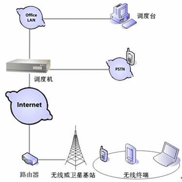 調(diào)度機(jī)通過有線網(wǎng)絡(luò)連接到各無線基站或衛(wèi)星地面站,利用原有的調(diào)度功能,可對各種無線終端進(jìn)行調(diào)度。目前除了衛(wèi)星以外,還可利用WiFi、SCDMA等無線技術(shù),根據(jù)使用范圍的大小來選擇不同的無線網(wǎng)絡(luò)。