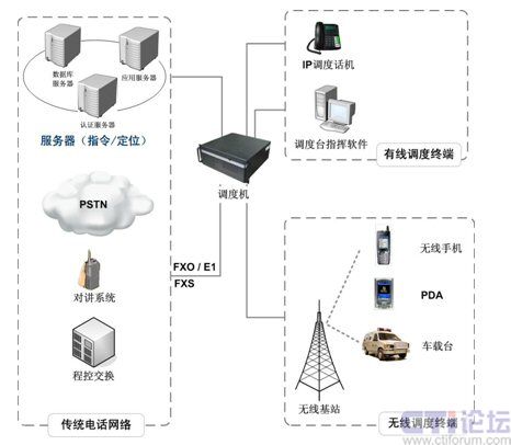 - 線調(diào)度終端包括:手機、PDA、車載臺等無線設(shè)備――這些設(shè)備通過無線基站連接到有線網(wǎng)絡(luò),分別配備不同的調(diào)度軟件實現(xiàn)調(diào)度功能。