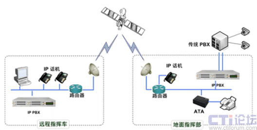 在有關(guān)部隊的應(yīng)用案例中,有兩方面比較常見,應(yīng)用也比較廣泛。首先是借助衛(wèi)星的遠程指揮通訊,我們?yōu)榈孛鏅C關(guān)與遠程指揮車之間架設(shè)起溝通的橋梁,除了電話、傳真等基本業(yè)務(wù),還通過IP-PBX系統(tǒng)提供了多方會議、語音留言、熱線電話等擴展業(yè)務(wù),在即使是雙星四跳的高延時環(huán)境下建立起穩(wěn)定的語音通信,保障了部隊指揮的有效下達。