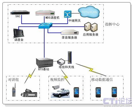 - 可以對(duì)包括傳統(tǒng)話機(jī)和手機(jī)等終端進(jìn)行調(diào)度,在應(yīng)急狀態(tài)下,調(diào)集其所有能夠使用的資源