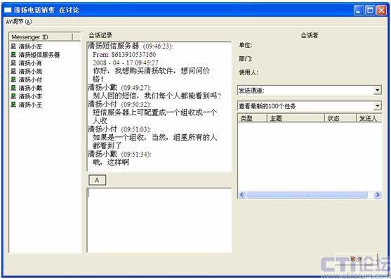 有了短信互動(dòng),那么給出差在外的員工發(fā)通知就容易了。同時(shí),外出的員工也可以隨時(shí)將信息發(fā)回給企業(yè)內(nèi)部的同事,甚至還可以同時(shí)通知到多人。這就是企業(yè)即時(shí)通信的組播能力也被發(fā)揮出來。