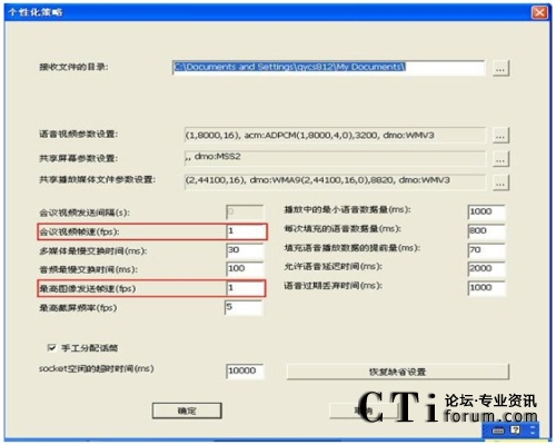 在會議進行之前,主持人要根據(jù)網絡環(huán)境和電腦配置來設置會議幀速和圖像最高發(fā)送幀速從而實現(xiàn)最佳的視頻效果。會議幀速和圖像最高發(fā)送幀速設置的越大,圖像就越連續(xù),但同時對電腦配置要求也就越高。如果服務器和主持人電腦配置可以達到雙核,2G以上的內存,就可以把會議幀速和圖像最高發(fā)送幀速設置到5fps以上,此時聲音和口型就可以對上。會議幀速對所有的參加會議的都生效,但如果會議幀速設置的過高,有的參會人員的幀速達不到會議幀速,這時可以把自身的圖像最高發(fā)送幀速設置的低一些,因為當會議幀速高于自身設置的圖像最高發(fā)送幀速時,以自身設置的為主,當會議幀速低于自身設置的最高圖像發(fā)送幀速時,以會議幀速為主。在各種條件都不是很好的情況下,建議會議幀速設置為1,這樣首先可以確保視頻會議可以正常進行,然后再一點點的增加會議幀速,最終達到最佳的效果。