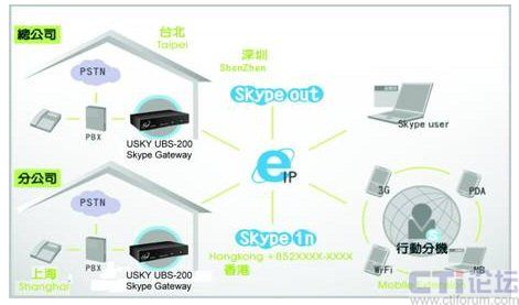 本公司新推出USKY UBS-400(4 ports)/UBS-200(2 ports) Skype Gateway,是專為企業(yè)用戶所設(shè)計(jì)的外接式Skype網(wǎng)關(guān)。只須將原有電話交換機(jī)(PBX)連接上我們的USKY UBS-400/UBS-200,企業(yè)用戶無需改變撥號方式,便可輕松透過桌上電話撥打或接聽Skype電話,將傳統(tǒng)電話提升為網(wǎng)絡(luò)電話(VoIP),既簡單又方便!有效幫助企業(yè)用戶增加通話效率,更能大幅減少通話費(fèi)。