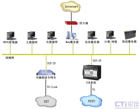 - IVR系統(tǒng):通過(guò)E1接入PSTN,控制該節(jié)點(diǎn)的話路交換及語(yǔ)音處理;