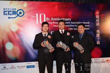 CTI論壇(ctiforum)11月20日消息(記者 張塵):11月19日晚,大中華區(qū)領先信息通訊技術服務商第一線安萊于2009年香港客戶中心大獎評選晚會中,再次囊括三項大獎:最佳外包客戶中心 (呼入)、最佳華南客戶中心 (100席以上) 及最佳離岸客戶中心。加上上個月由中國呼叫中心協(xié)會CNCCA授予的“2009中國(亞太)最佳外包呼叫中心”及全球IP通訊聯(lián)盟所頒發(fā)的“最佳外包呼叫中心供應商(國內(nèi))”獎,第一線安萊在這個金秋時節(jié)可謂收獲頗豐。第一線安萊IP呼叫中心再次獲得業(yè)界的認同,這也體現(xiàn)了第一線安萊在該項產(chǎn)品及服務方面擁有領先的優(yōu)勢,通過持續(xù)進步,為客戶創(chuàng)造有利的營運模式,也有助于奠定企業(yè)服務的標準,再度奪獎乃實至名歸。